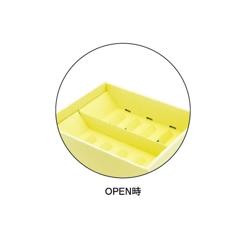 レモンケーキが入り、焼菓子にも対応できる爽やかなレモンイエローのケース。フタ・ソコ・仕切の3点セット。商品材質:紙 |
