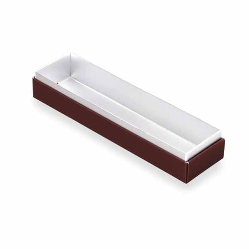 長さ215から230mm対応のスリムパウンドケースです。背の高いパウンドケーキにぴったり。ギフトに最適なインロー形式。フタ・ソコ・中箱・透明フィルムの4点セット。商品材質:紙+OP |