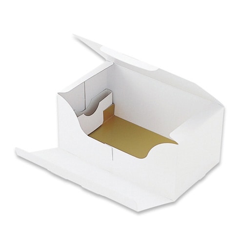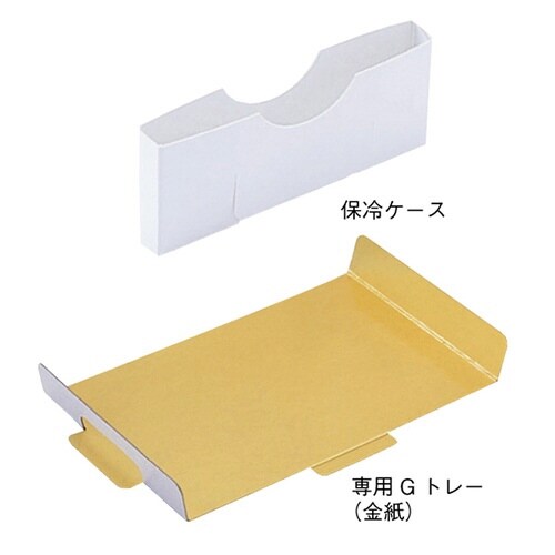 本体、金紙トレー、保冷ケースの3点セット。取っ手なしタイプ。高級感のある光沢ホワイト。 |
