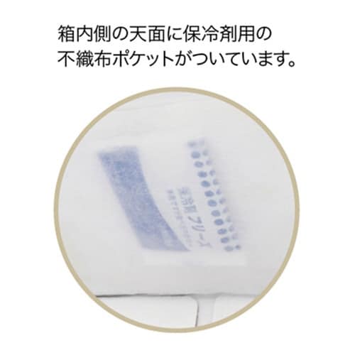 天面内側に保冷材用の不織布ポケットが付いています。高さ150mm。商品サイズ:190×190×H150mm |