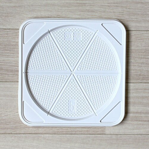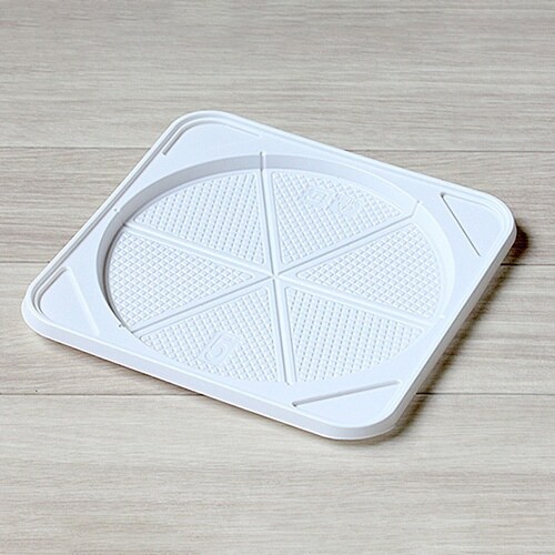 直径約15cmのホールケーキ5号用のプラスチックトレーです。カットの目盛もついていて便利です。 |
