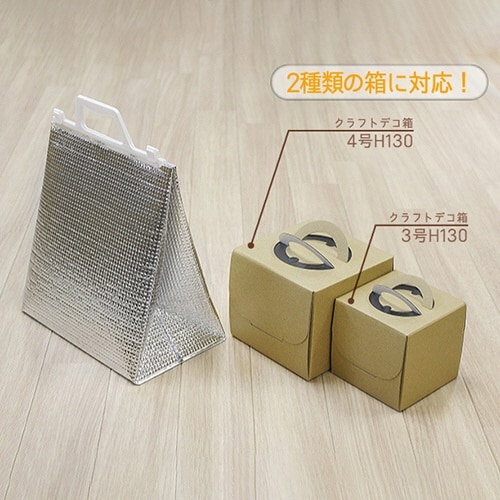 ホールケーキのお持ち帰り用におススメな、マチ広タイプの保冷バッグです。カットケーキ箱から、デコ箱3から4号サイズまで対応できます。