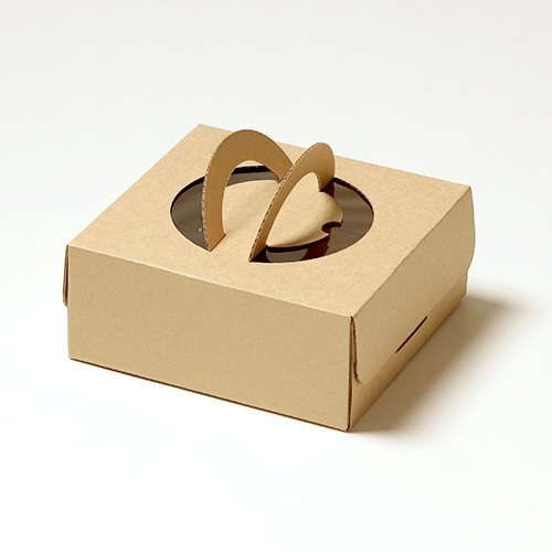 エコなクラフト素材を使用したホールケーキ5号箱。箱の高さが8cmなので、背が低めのケーキにおススメです。取っ手付きなので、袋に入れずに箱のままお持ち帰りいただけます。トレーは別売。 |