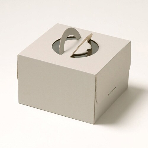 グレーカラーのホールケーキ6号箱。箱の高さが15cmですので、背の高いデコレーションケーキやシフォンケーキなどにもお使いいただけます。トレーは別売り。 |