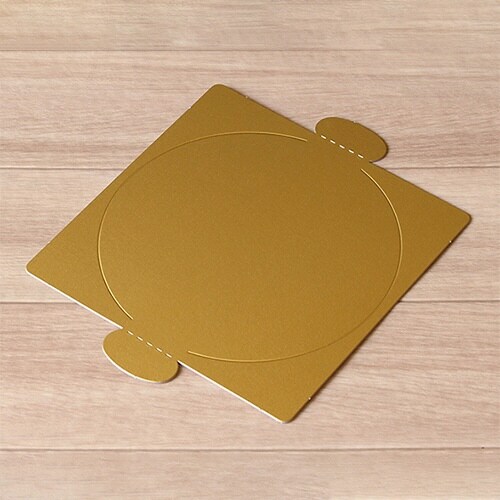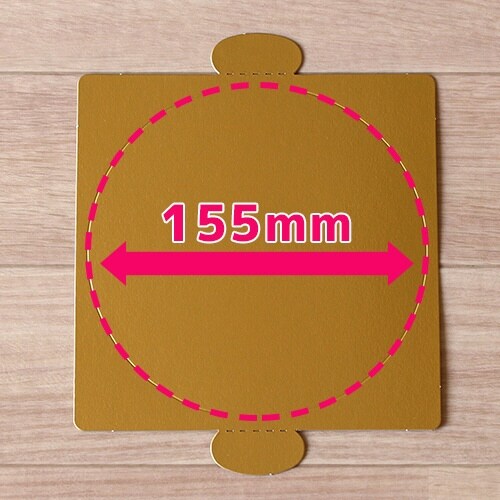 直径約13.5cmのホールケーキ4.5号用のかわいい金色の紙トレーです。縁がないので、どんな形のケーキでも使用できます。 |