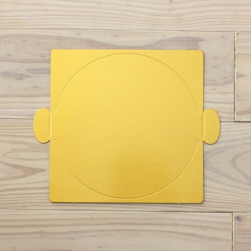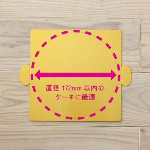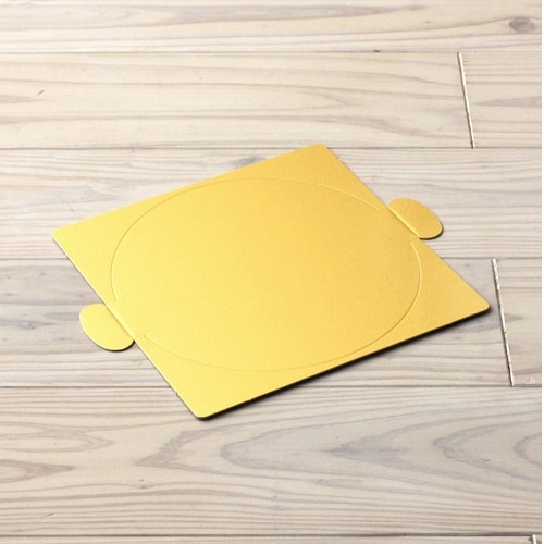 直径約15cmのホールケーキ5号用のかわいい金色の紙トレーです。縁がないので、どんな形のケーキでも使用できます。 |