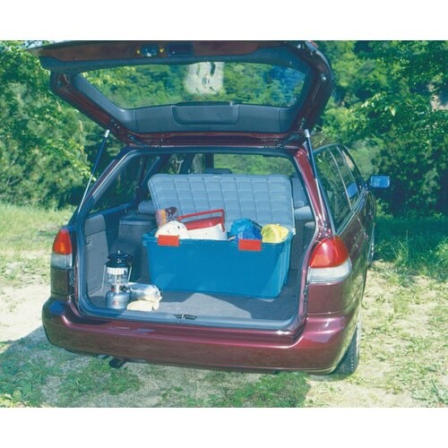 ステーションワゴンのラゲッジスペースにピッタリ収まるサイズです。フタは雨水が入らない設計になっています。 |