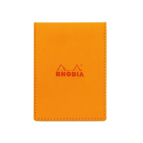 ロディアの素押しロゴが刻印されたしなやかな合皮カバー。レザーライクな高品質のPU素材を使用