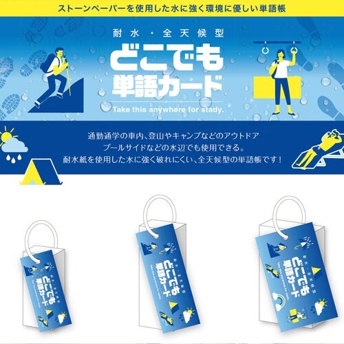 ストーンペーパーを使用した水に強く環境に優しい単語帳。耐水紙を使用した水に強く破れにくい全天候型の単語帳。油性ペンや鉛筆での筆記がお薦め |