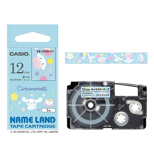 ネームランドのサンリオキャラクターテープ「シナモロール」 12mm幅・3m巻 |