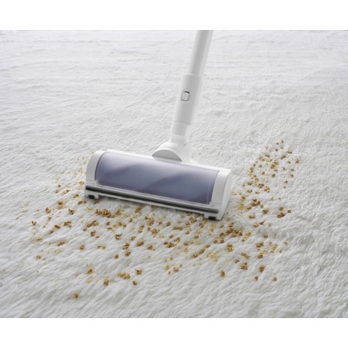 DCBLヘッドで、毛足の長い敷物も奥の細かいゴミまで逃さず吸引します。ワンタッチで捨てられる紙パック式です。置くだけで充電可能なスタンド付きです。紙パック2.5年分(25枚)付属。 |