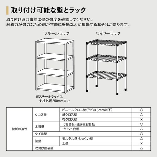 スチールラックやワイヤーラックに巻き付けて転倒を防止します。 |