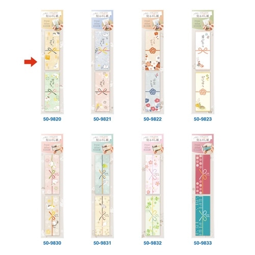 お土産などのちょっとしたギフトを渡すときに使える、付箋タイプののし紙です。のしノートよりも気軽なシーンで使えるサイズ感とデザインが特徴です。 |
