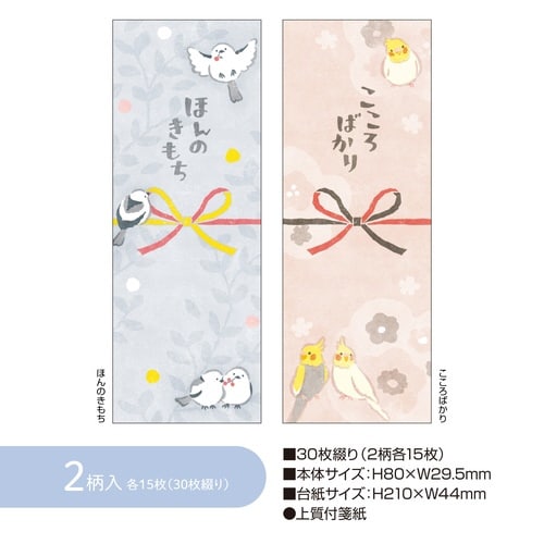 サイズ:縦80mm、横29.5mm | 枚数:1冊30枚(2柄各15枚) | 単位:1セット(30枚綴り(2柄各1