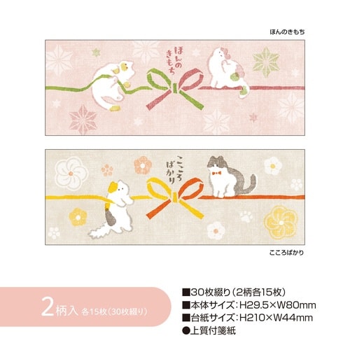サイズ:縦29.5mm、横80mm | 枚数:1冊30枚(2柄各15枚) | 単位:1セット(30枚綴り(2柄各1