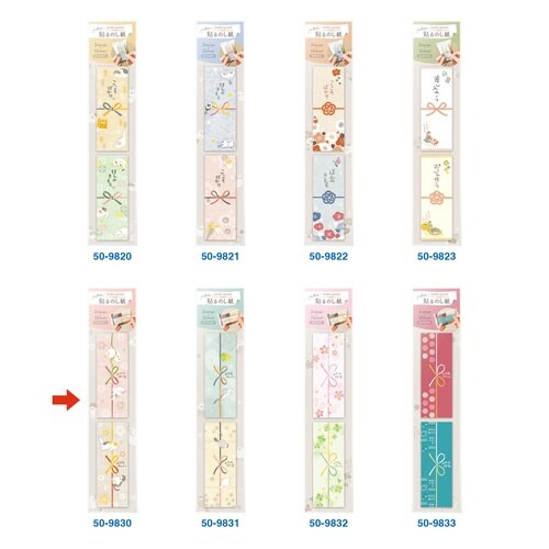 お土産などのちょっとしたギフトを渡すときに使える、付箋タイプののし紙です。のしノートよりも気軽なシーンで使えるサイズ感とデザインが特徴です。