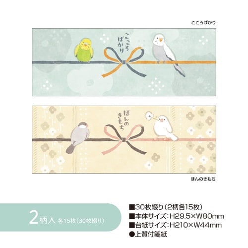 サイズ:縦29.5mm、横80mm | 枚数:1冊30枚(2柄各15枚) | 単位:1セット(30枚綴り(2柄各1