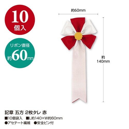 ササガワ 記章 五方 2枚タレ 赤×20 9352-4698