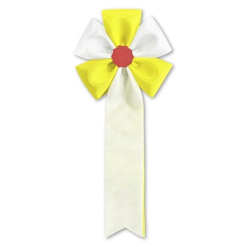 材質:アセテート繊維 | カラー:黄 | 花径:60mm | 付属品:安全ピン付 | 単位:1セット(10個×20)