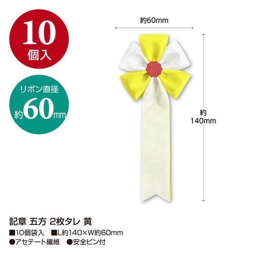 ササガワ 記章 五方 2枚タレ 黄×20 9352-4711