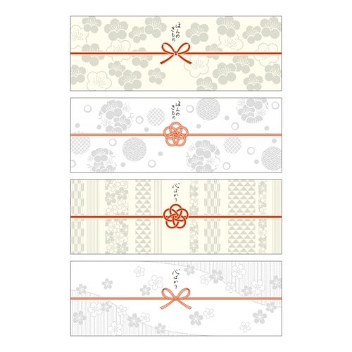きらめくパール印刷がギフトシーンを上品に彩る、のし紙のようなラッピングアイテムです。1冊に4柄入っているのでお好きな柄からご使用ください。ノート状なのでバラけることなく保管できます。