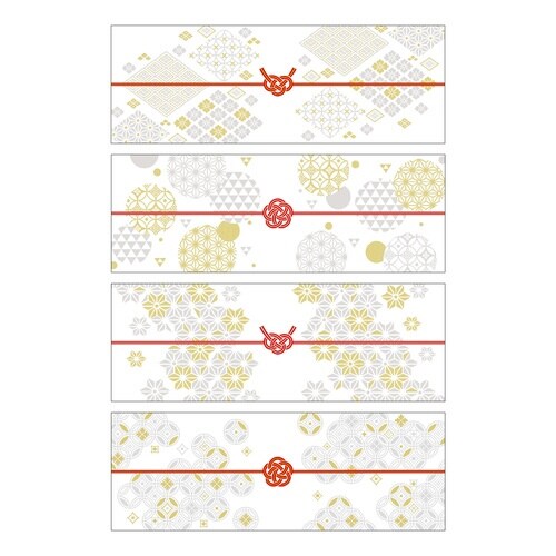 きらめくパール印刷がギフトシーンを上品に彩る、のし紙のようなラッピングアイテムです。1冊に4柄入っているのでお好きな柄からご使用ください。ノート状なのでバラけることなく保管できます。