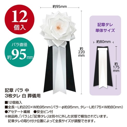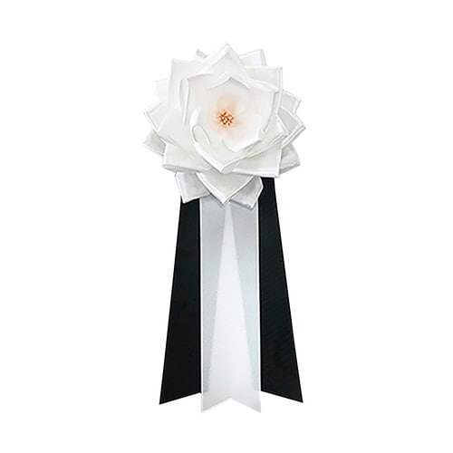 葬儀、お葬式、追悼式、慰霊祭などのお悔やみの式典で着ける胸章です。花とリボンタレがセットとなります。 |