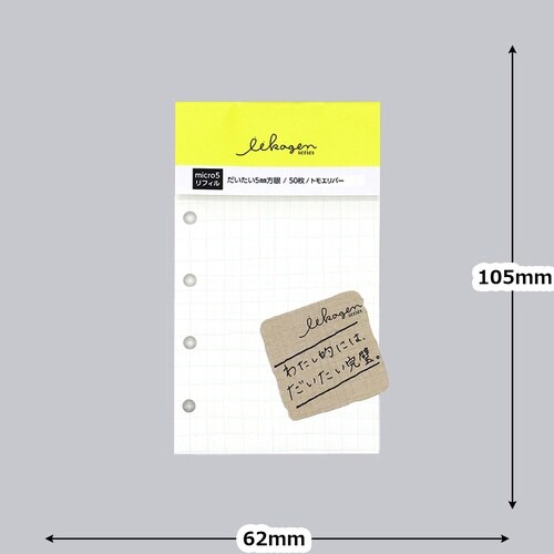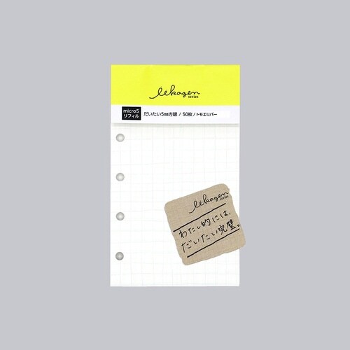 手のひらに収まる大きさが人気の、だいたい5mm幅の手書きの方眼罫線のマイクロ5穴のシステム手帳リフィル(105×62mm)。