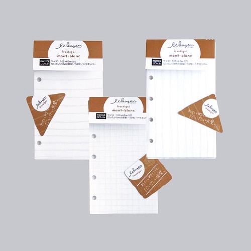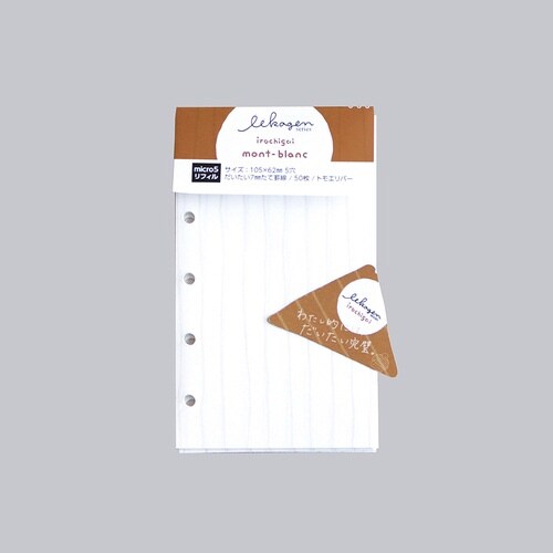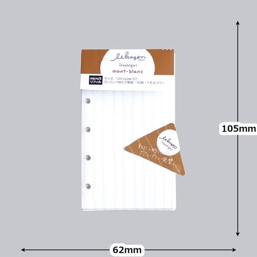 手のひらに収まる大きさが人気の、だいたい7mm幅の手書きのたて罫線のマイクロ5穴のシステム手帳リフィル(105×62mm)。 |