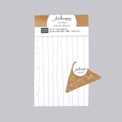 小さいけれどしっかり使える、だいたい7mm幅の手書きのたて罫線のミニ6穴システム手帳リフィル(126×76mm)。