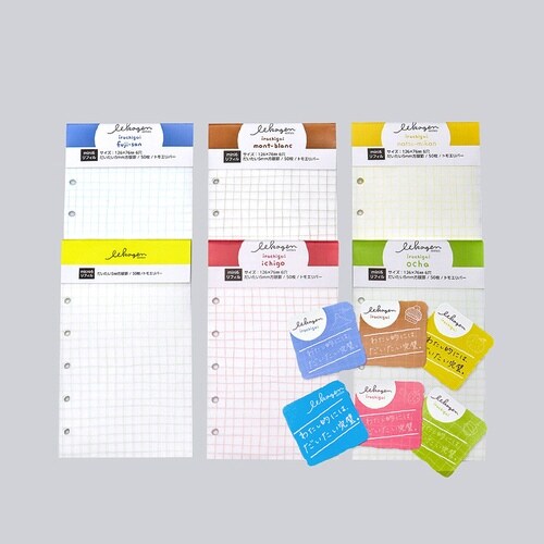 小さいけれどしっかり使える、だいたい5mm幅の手書きの方眼罫線のミニ6穴システム手帳リフィル(126×76mm)。 |