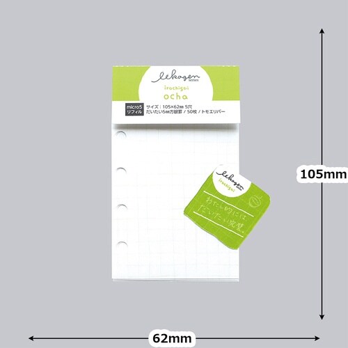 手のひらに収まる大きさが人気の、だいたい5mm幅の手書きの方眼罫線のマイクロ5穴のシステム手帳リフィル(105×62mm)。 |