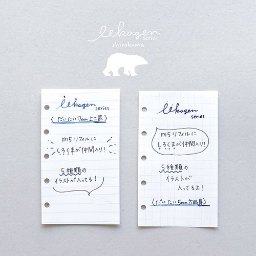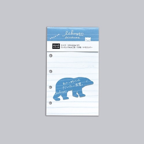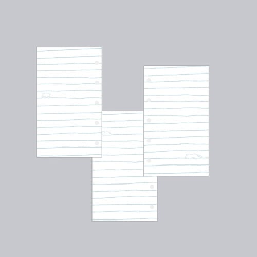 手のひらに収まる大きさが人気の、だいたい7mm幅の手書きのよこ罫線のマイクロ5穴のシステム手帳リフィル(105×62mm)。 |