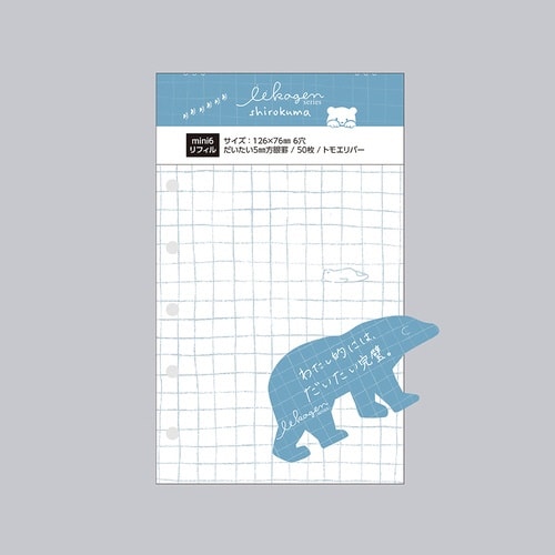 小さいけれどしっかり使える、だいたい5mm幅の手書きの方眼罫線のミニ6穴システム手帳リフィル(126×76mm)。 |