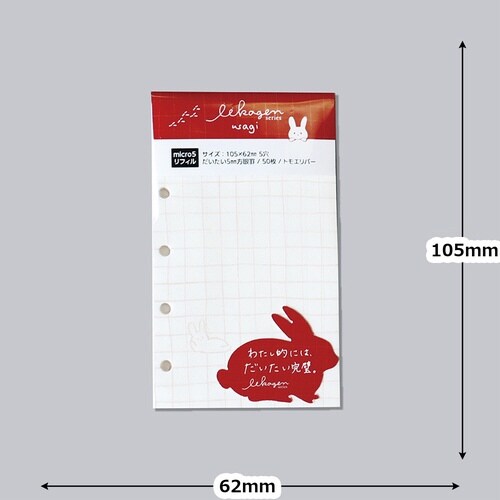 手のひらに収まる大きさが人気の、だいたい5mm幅の手書きの方眼罫線のマイクロ5穴のシステム手帳リフィル(105×62mm)。 |