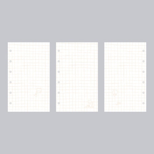 小さいけれどしっかり使える、だいたい5mm幅の手書きの方眼罫線のミニ6穴システム手帳リフィル(126×76mm)。