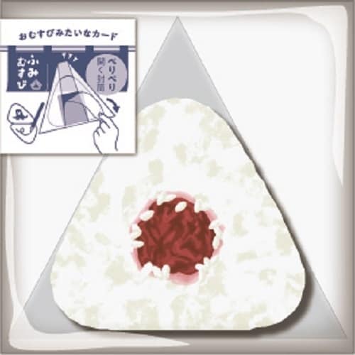 いつも食べてるおむすびみたいなミシン目付き封筒が楽しい!どんなおむずびにメッセージが書いているかは封筒を開けるまでのお楽しみ!いつものシリーズは全8種です。