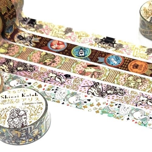 クラシックなイラストで描かれたアリスの世界。物語のワンシーンや登場するキャラクターたちを魅力的に描いた、長年読み継がれた絵本を開いたようなマスキングテープです。
