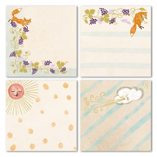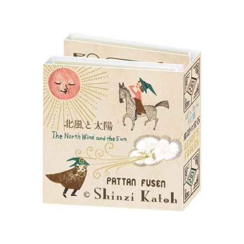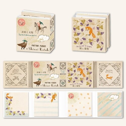 子供のころから親しんだ童話のワンシーンを描く「童話の宝石」イソップは、「狐と葡萄」と「北風と太陽」のワンシーンをモチーフにデザインされています。4種の絵柄の付箋が各20枚、計80枚分入っています。 |