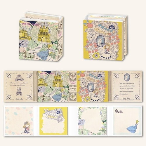 子供のころから親しんだ童話のワンシーンを描く「童話の宝石」グリムは、「シンデレラ」と「白雪姫」のワンシーンをモチーフにデザインされています。4種の絵柄の付箋が各20枚、計80枚分入っています。 |