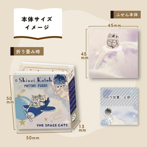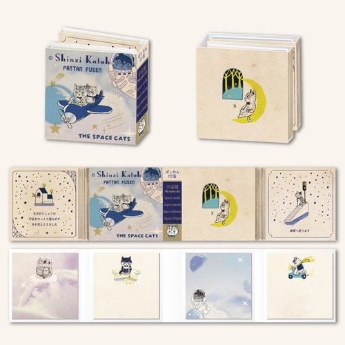 宇宙を旅する猫たちの架空の物語「宇宙猫」は、宇宙を背景に描かれた叙情的なイラストと文章がデザインされています。4種の絵柄の付箋が各20枚、計80枚分入っています。 |