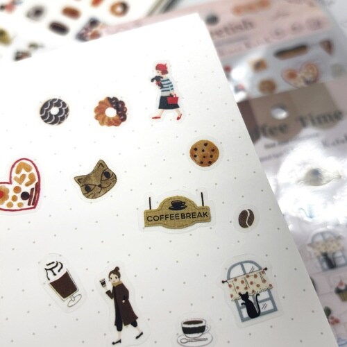 手帳やダイアリーのデコレーションに使いやすい小ぶりで可愛いシールがたっぷりついたシートシールです。同じ絵柄が上下で2セット入っていて交換やシェア使いも楽しめます。