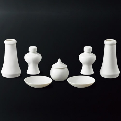 神棚にお供え物をする器です。水玉はお水を入れます。神棚に向かって左のお皿にはお米、右にお塩(盛り塩)榊、お神酒を入れます。 |