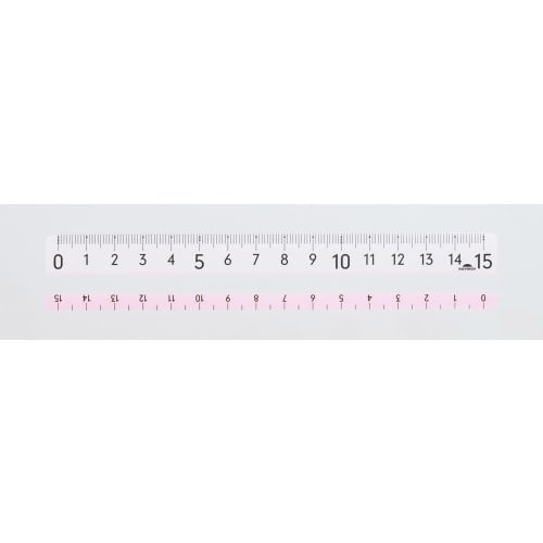 どんな印刷面にも数字とメモリが見やすい15cmの直線定規。 |
