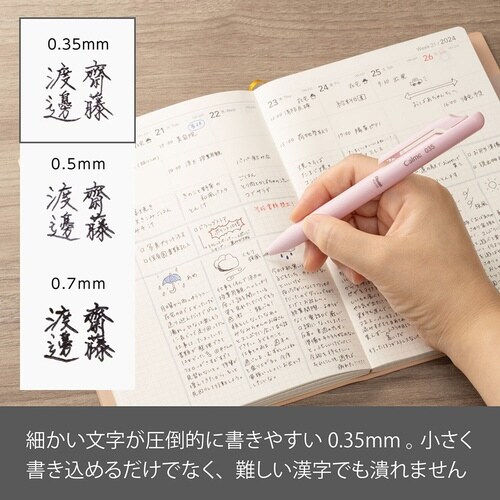 ボール径:0.35mm | 軸色:ピンク | 材質:前軸:PP、後軸・ノッククリップ:再生PC、グリップ:エラストマー | 機構:ノック式 | インキ…