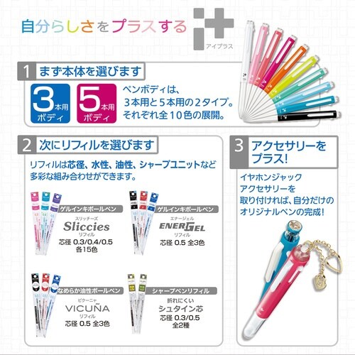 スリッチーズリフィル:BGRN3・4・5、ビクーニャリフィル:BXST5、エナージェルリフィル:LRNT5、シャープペンリフィル:PUT103・105