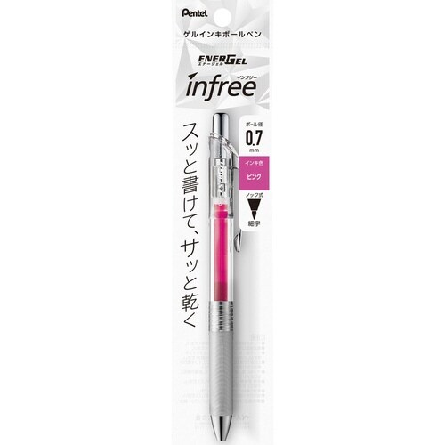 クリア軸から直感的にインキ色がわかるエナージェル インフリー。 |