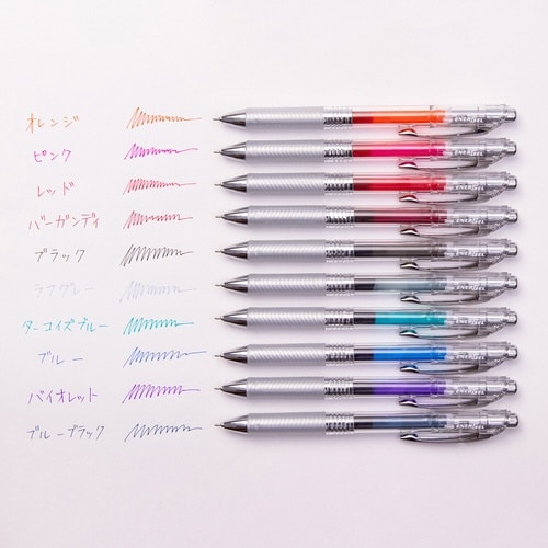 クリア軸から直感的にインキ色がわかるエナージェル インフリー。