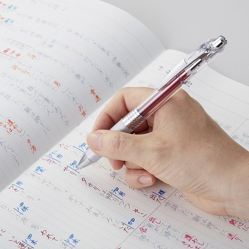 ボール径:0.5mm(ニードルチップ) | 軸色:クリア | 材質:後軸・頭冠:再生PC、ノック・前軸:ABS・樹脂メッキ、グリップ:エラストマー、ク…