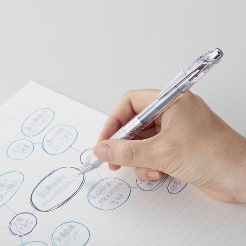 ボール径:0.5mm(ニードルチップ) | 軸色:クリア | 材質:後軸・頭冠:再生PC、ノック・前軸:ABS・樹脂メッキ、グリップ:エラストマー、ク…